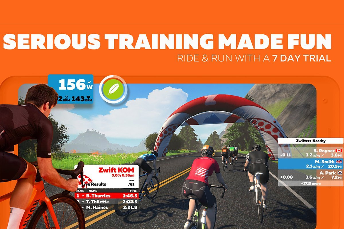 Zwift spája videohru so serióznym tréningom. Potrebujete internet, trenažér a zariadenie kompatibilné s aplikáciou a môžeš vyraziť na jazdu s cyklistami po celom svete. Pokiaľ ti plány prekazí počasie alebo je tvoj cyklo-parťák ďaleko od vás, pripojte sa na Zwift a trénuj z domova.