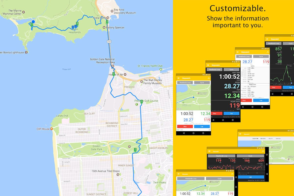 Cyclemeter spraví ti z tvojho smartfónu cyklopočítač - pokiaľ ti nevadí mať ho upevnený na riadidlách. V množstve a šírke možností zobrazovania počas jazdy je podobný Wahoo Fitness, no ponúka mnoho analýz a štatistík aj po jazde. Všetky štatistiky ostávajú vo vašom telefóne a teda nie je potrebné sa dodatočne pripájať na rôzne stránky.