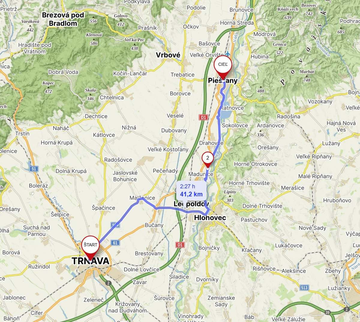 V Piešťanoch je množstvo miest na občerstvenie a fontánok na doplnenie vody. Ak sa ti nechce vracať na bicykli, môžeš použiť vlak s prestupom v Leopoldove – stanice v Piešťanoch aj Trnave sú dobre dostupné.